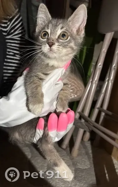 СПб. Выборгский район 08.08 в 12:00 найден котенок на Северном проспекте 9. Сидел(а) на трассе , забрали временно в подъезд. Предположительно девочка, возраст около 2х месяцев.