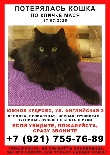Найдена кошка! Найден кот Крупный черный кот-Бегемот, 6,5 кг, жёлтые глаза. Найден в подъезде дома на Ломоносова, Владимирский, Центральный район - метро Владимирская, Достоевская. Имя нашедшего: Диана Телефон: +79217934670 (телефон или вотсап) Адрес: метро Владимирская, Достоевская