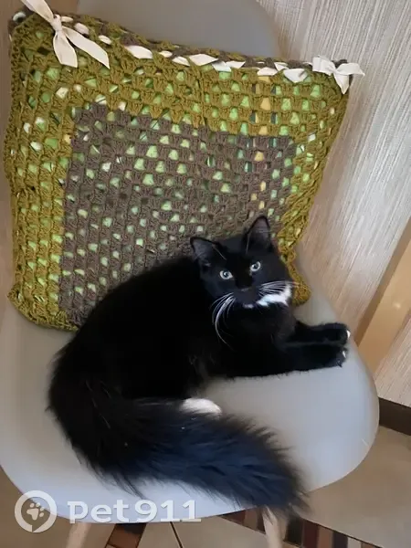 23 августа во дворе дома по ул. Варшавская была найдена молодая кошечка, ухоженная, не стерилизованная. Чёрная с белым галстуком на грудке, хвост красивый, пушистый, задние лапки наполовину белые, основная примета-на передних лапках белые пальчики, шикарные усы, глаза жёлтые. Кошка очень коммуникабельная, общительная, видно, что была любимцем (человека не боится, очень ласковая, спать любит в кровати, лоток и переноску знает, бежит на шуршание пакета с кормом, любит смотреть в окно, разговорчивая ). Возили в ветклинику: кошке примерно 6+ месяцев, заболеваний нет. Может быть, кто-то ищет своего питомца?