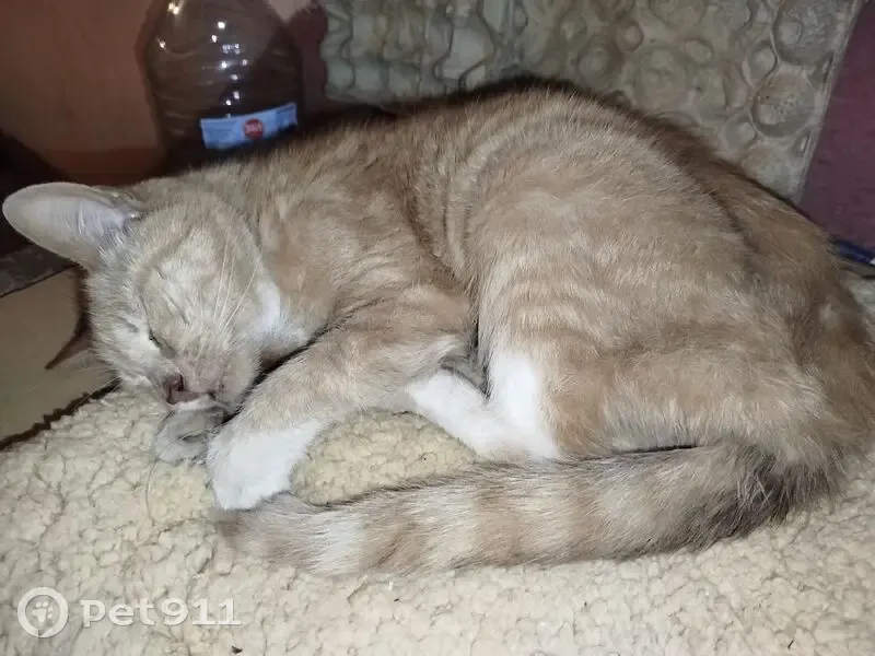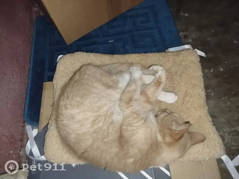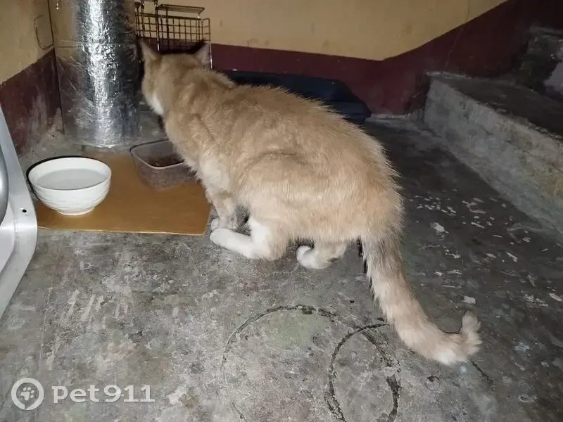 Кошка или кот. Рыжее животное, но на фото плохо видно. Животное грязное и где было рыжее, беленькое, там грязненькое. Очень ласковое животное, длинные лапки, грациозное