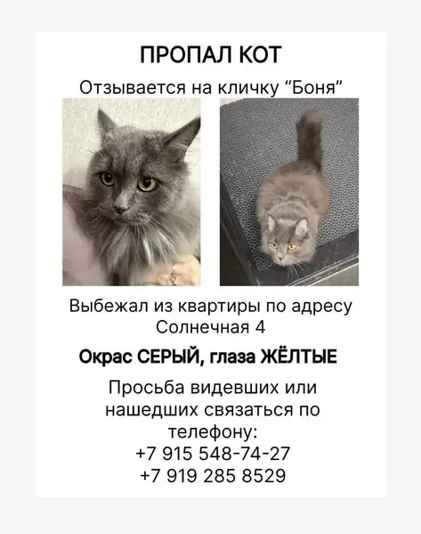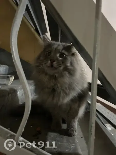 Найден большой кот или кошка не знаю,очень крупный ,пушистый,разговорчивый,контактный! Ест только сухой корм,сидит на лестнице уже сутки.Точно домашний!