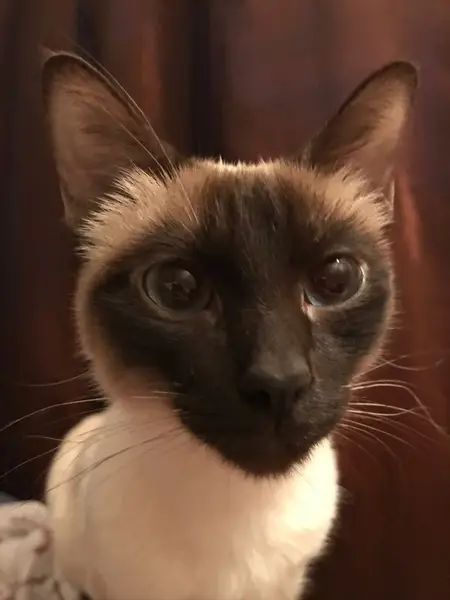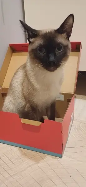 Сиамская кошечка,диковата,была очень напугана.