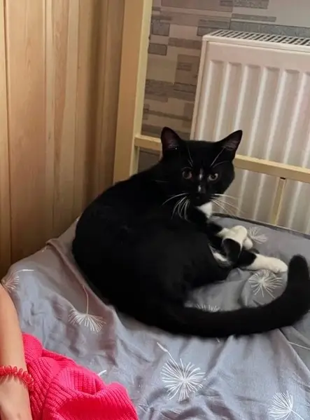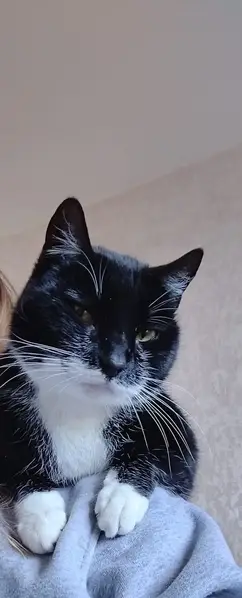 16.10.2025, найдена черно-белая кошка. СПб, метро Чернышевская, Кирочная ул., д. 36 Ласковая, контактная, явно домашняя, знает лоток, к людям контактная. Окрас: Черная спинка, белый живот, белые носочки, белая шейка на мордочке белая мамочка, равномерная. Небольшого размера, миниатюрная. Короткошерстная. Ребенок отойдет от стресса, сделаю более четкое фото. Вдруг ее потеряли Контакт для связи +79219100332