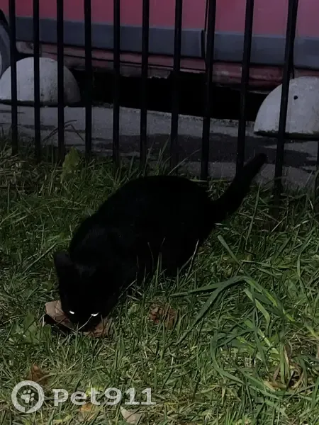 Черный с белым пятнышком на манишке небольшой кот или кошка (похоже возраст всего пол года). Перебегал пр. Культуры на пешеходном переходе около Культуры 21к1. Очень пугливый, пытались вдвоем поймать, никак не дается. Купили корм, котик добежал до Культуры д.25к1, там ему положили корм.