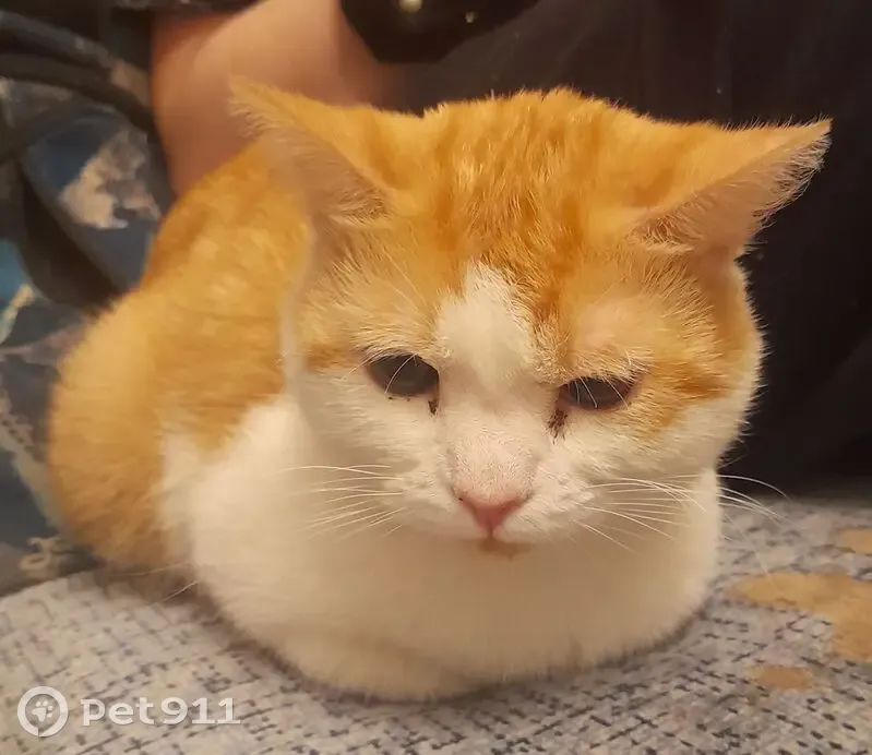 Котик, рыжая спинка, белые грудь и передние лапы. Ласковый, но испуганный. 21.11.2025. Были у ветеринара. Дополнения: возраст около года. Крипторхизм, шрамы в паху. Видимо, была какая-то операция, которая непонятно чем закончилась...