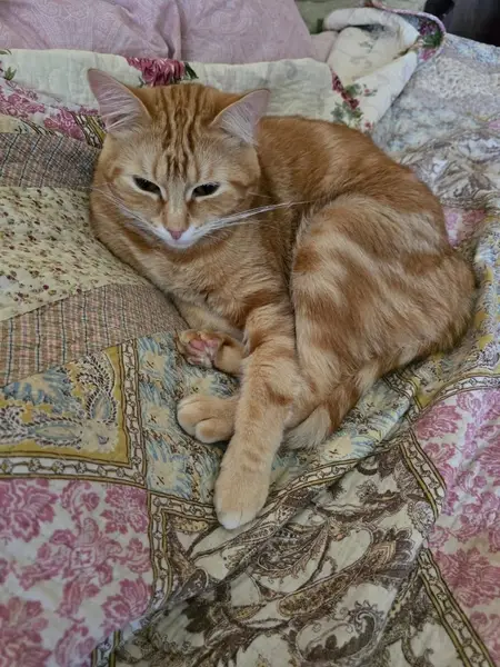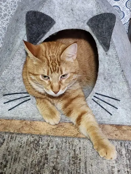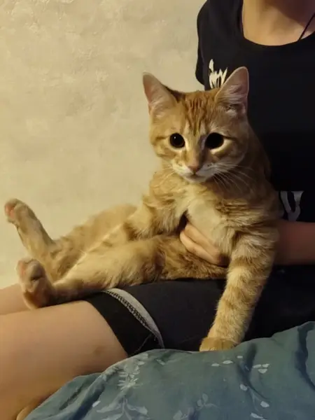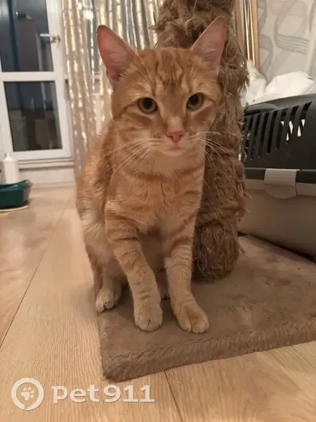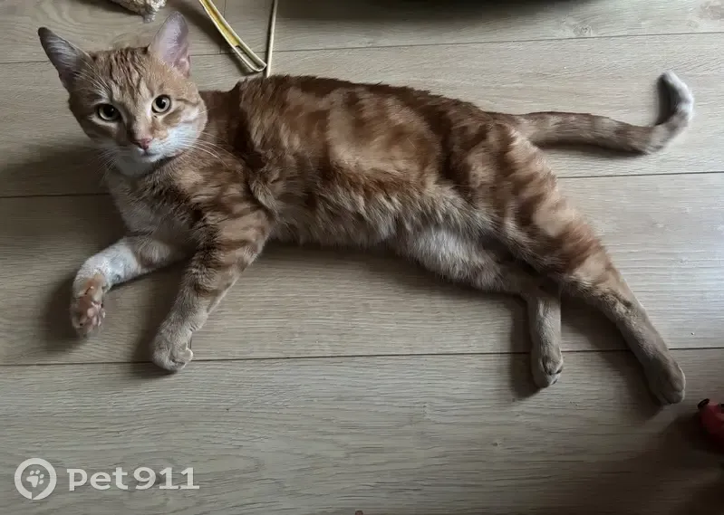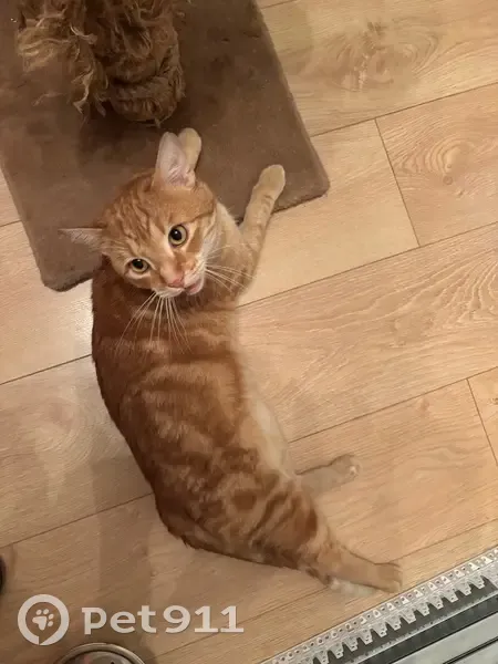 Найден рыжий кот в Приморском районе, угол Богатырского пр. И Байконурской ул. Котик довольно чистый, не кастрирован, приучен к лотку, тактильный, разговорчивый) хромает на переднюю лапу