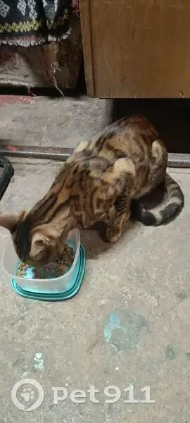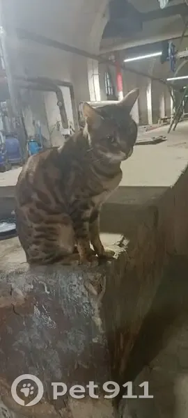 Кот бенгальской породы, молодой, кастрированный, ручной. Найден на территории котельной вблизи Лабораторного проспекта, д. 18. Калининский и Красногвардейский районы.