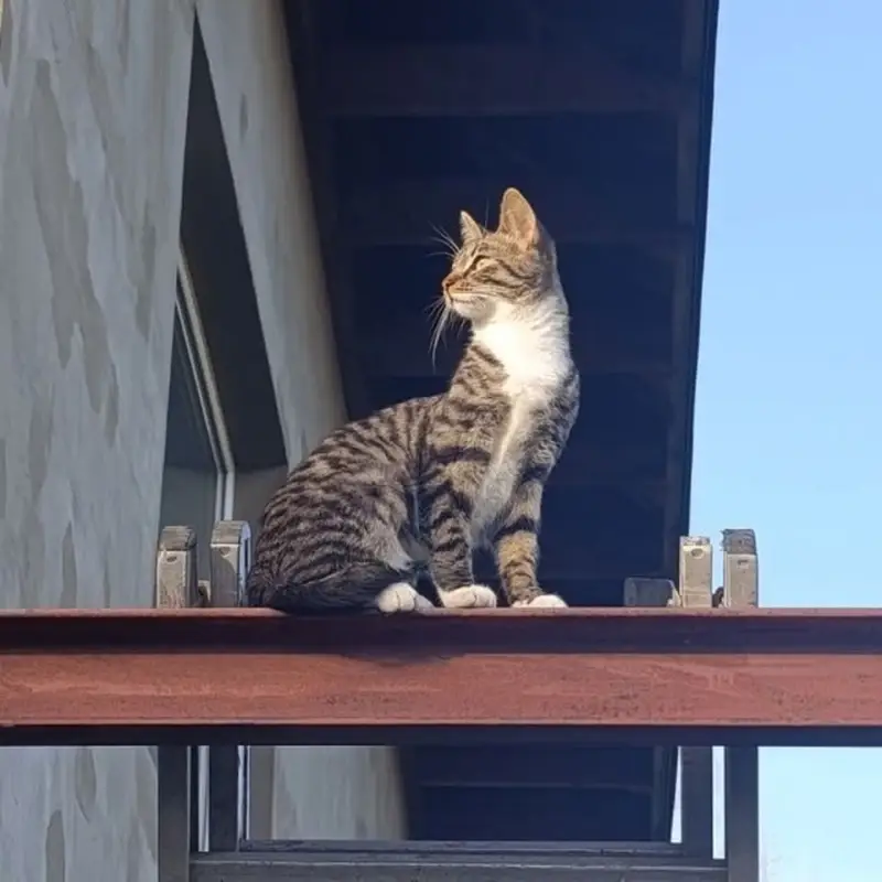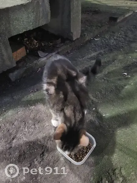 Найден котик или кошка несколько дней сидит у парадной 10 и 11. Ласковый, обо всех трется. Кормим. Живет на улице. Ушки розовые, лапки белые, сам полосатый. Чистая шерсть, видно, что домашний.