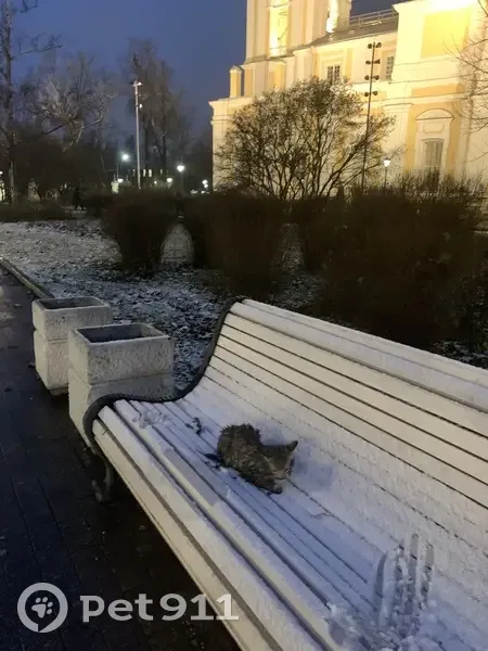 , на улице +. И кот исчез со скамейки за 15-30 минут. В этом районе много хороших людей, любителей животных, наверняка, у кого-то была возможность и они оказали дальнейшую помощь.