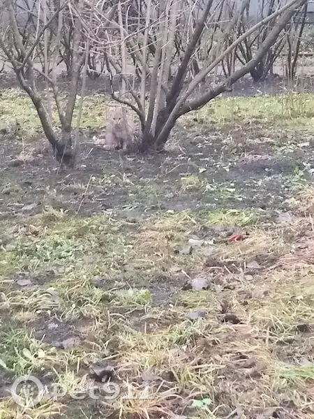 Серая в полососку, глазки большие. Разглядела плохо так как очень боялась меня, при попытках приблизиться к ней отбегала, держа растояние. Была явно на стрессе, возможно породистая так как шерста длинная у неё, длинее чем у дворовых обычно. Извините, за плохое качество снимков:(