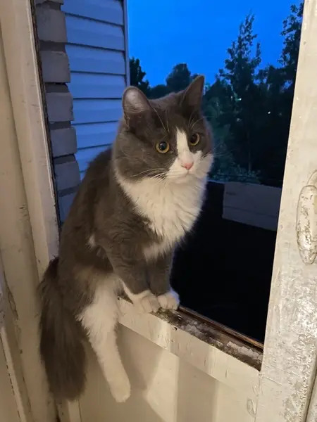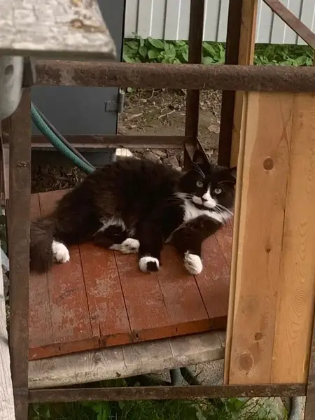 Кошка сидела у подъездной двери на улице, вошла в подъезд, боится, в руки не идёт, не ест, не пьет. Видно, что ухоженная и домашняя. Кот или кошка не знаю