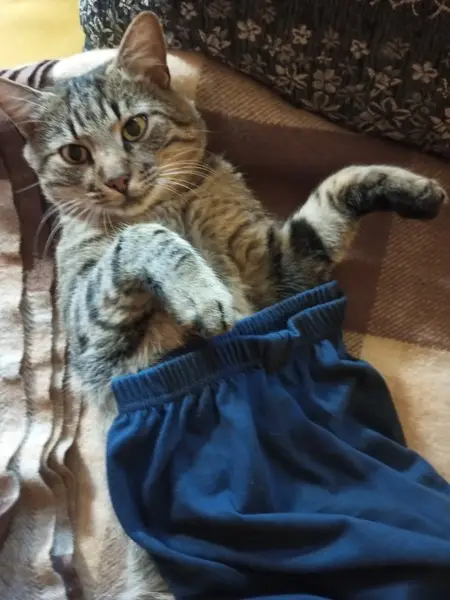 Кошка найдена под окнами дома, на вид 4-6 месяцев и ее совсем недавно кормили, как сказал ветеринар. На шее ошейник с сердечками и красный бубенчик, очень домашняя, вряд ли была на самовыгуле