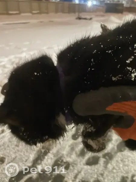 СПб, Приморский район Парашютная улица. 28.01.2026. На стройке ЖК Прайм Приморский найден чёрный котенок в сиреневом ошейнике. Работник понес к себе в вагончик. Замерз, весь хвост был во льду, явно сидел всю ночь. Для связи https://vk. Ru/viktoriakv