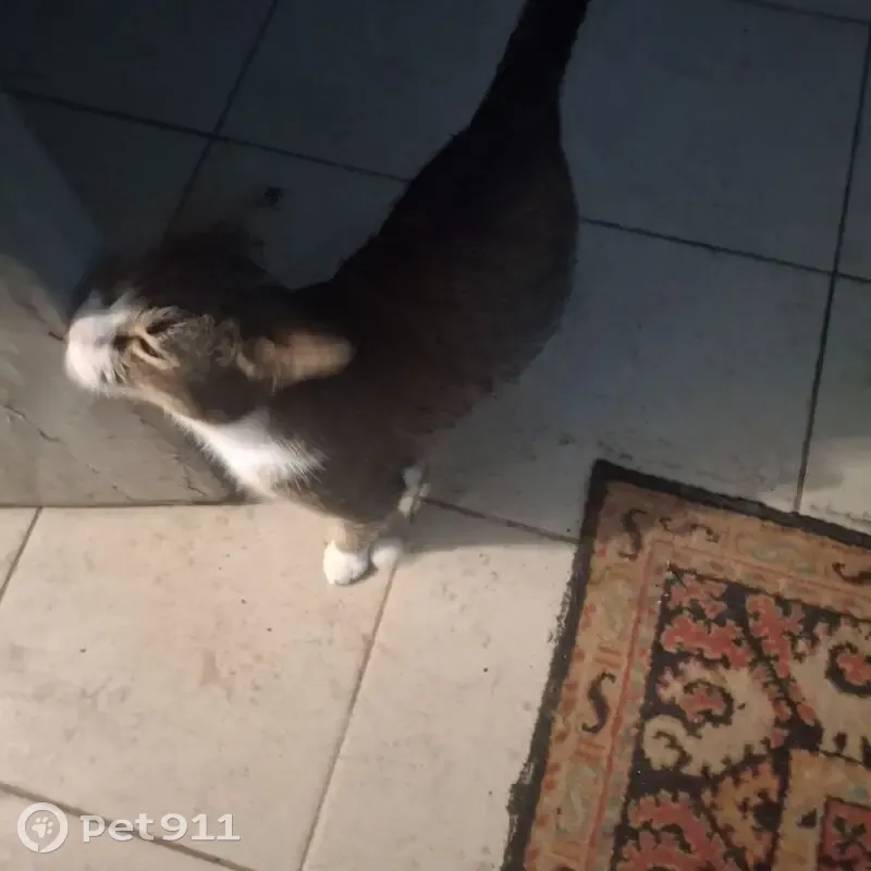 Найдена кошка, Софийская улица, Санкт-Петербург - серая в полосочку, мордочка белая