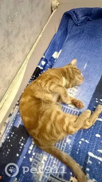 Найден кот в Московском районе по адресу: Московкое шоссе 16к1 был обнаружен 24.03 у салона красоты “OLA” Самец, рыжий, ручной, ласковый, чистый, нос и лапки ярко розовые, не кастрирован, явно домашний, разговорчивый, похож на метиса, полосатый 89111147401 Вероника или 89112868687 Оксана