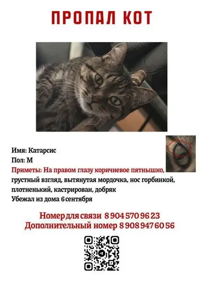 Найдена кошечка. Окрас серый, полосатый. Найдена во второй половине мая 2019 в Выборгском районе СПб на пересечении ул. Руднева и Сиреневого бульвара. Примерный возраст около года. Домашняя, ласковая, идёт на руки. Прихрамывала, возможно выпала из окна. Сейчас все хорошо. Звоните по телефону 8921-433-03-07 Ирина