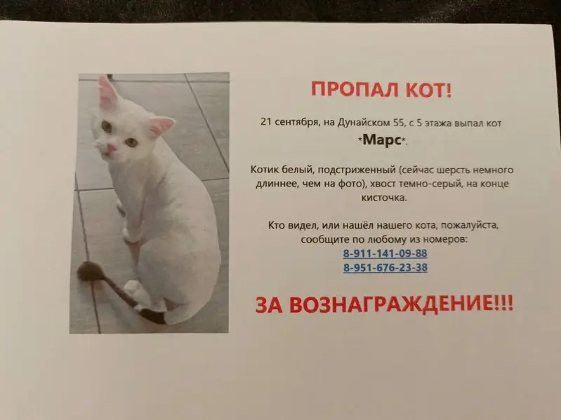Светлановский 76к1 со стороны дет.сада. Найдена кошка. На лбу две рыжие отметины, хвост тоже с рыжиной.