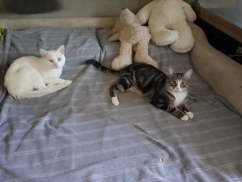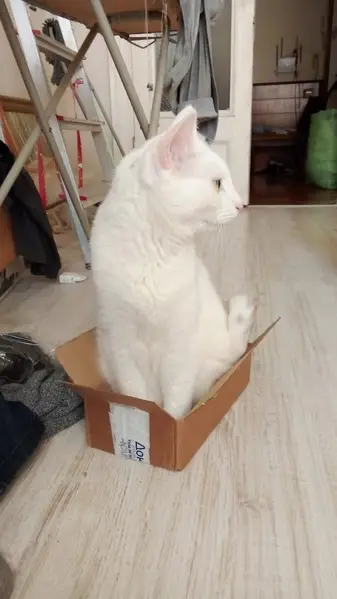 Белая кошечка с полосатым хвостом, очень ласковая, добрая, тянется к людям. Найдена на улице на пешеходной дороге у магазина Лента на ул. Бабушкина. Было истощение и сильное обезвоживание, возможно был удар по голове. Сейчас кошечка восстанавливается в клинике, показывает хорошую динамику к выздоровлению, но пока ходит пошатываясь.