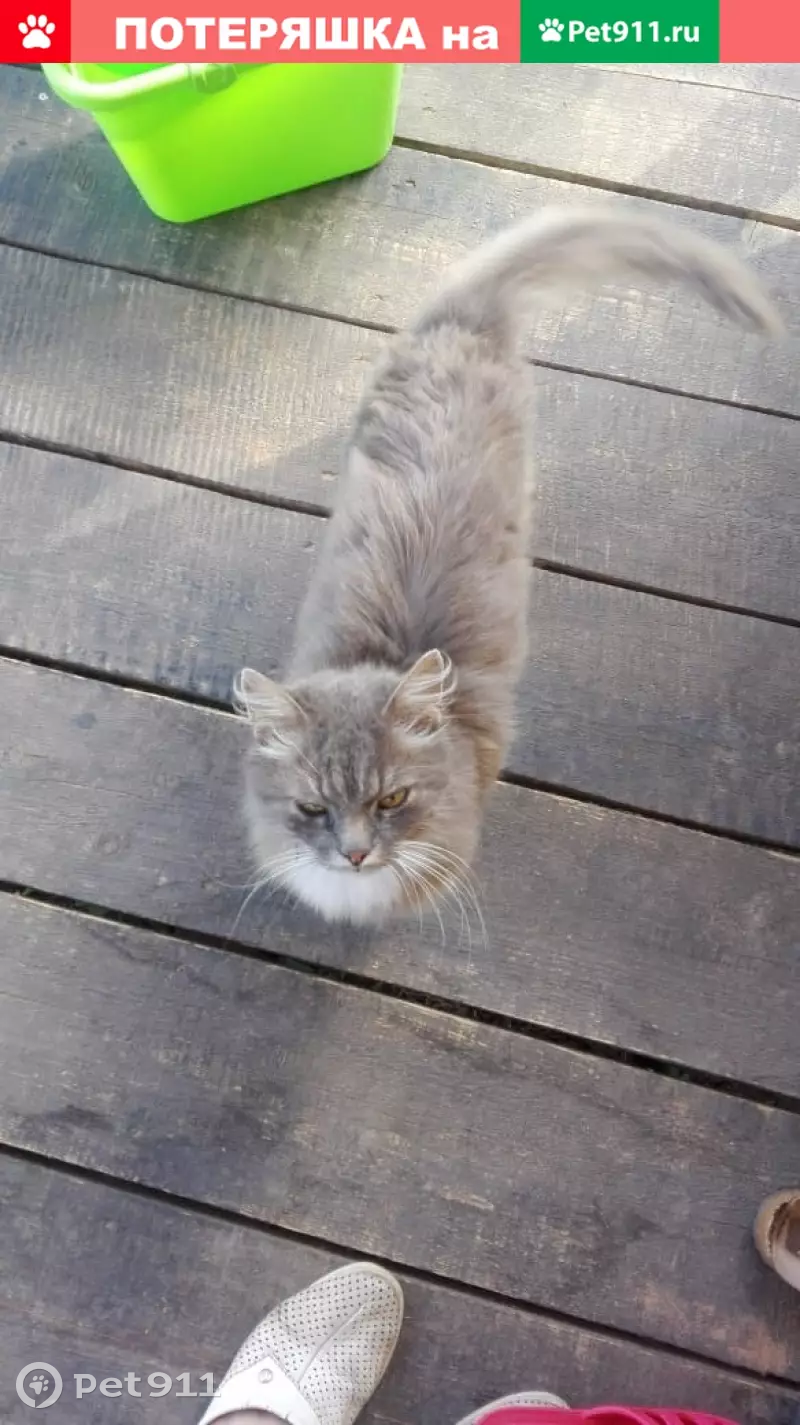 7 сентября Найден кот. Серый дымчатый с белой грудкой. Явно домашний. Пришёл к дому и живет на крыльце.