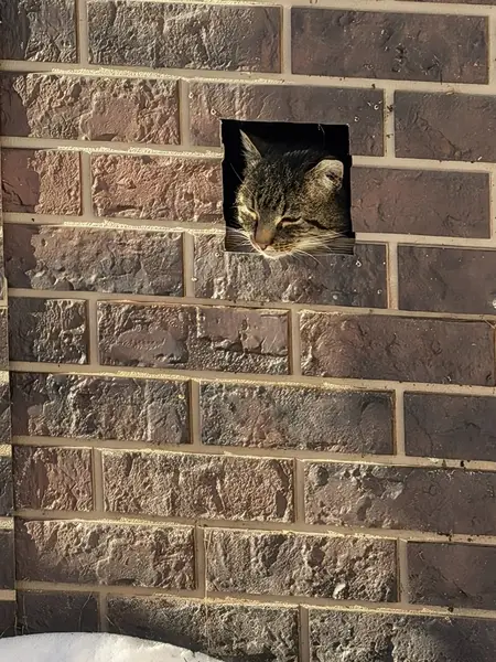 Санкт-Петербург, Выборгский район, уж, Хошимина 13/1. Нашли 27.01.2020. Бродила по улице, прикормили на крыльце парикмахерской этого дома, но пришлось забрать домой, так как на неё, как на чужую, нападали местные уличные кошки. Очевидно, кошка домашняя, она не худая, ласковая, и с металлическим ошейником на шее. Пол - женский, окрас полосатый, пестрый, чипа или клейма не нашли. Массивными лапами, круглой головой и выразительным подбородком, похожа на Британку. Очень прошу забрать её, потому что у нас два кота и они настроены агрессивно к гостье. Тел. 89234286113
