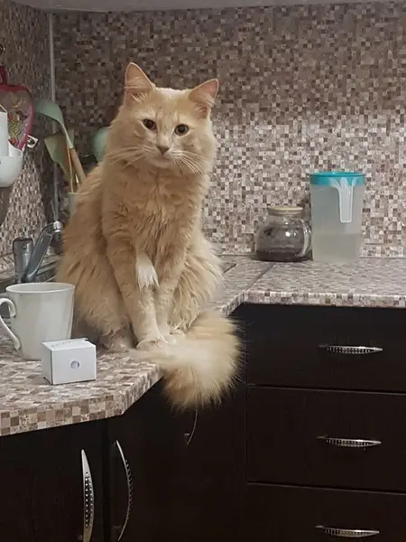 Абсолютная рыжая, очень ласковая и явно домашняя кошка, с виду совершенно здорова. Нашли её в своём подъезде, но, опросив все квартиры, хозяина так и не нашли, а оставить её у себя никак не можем.