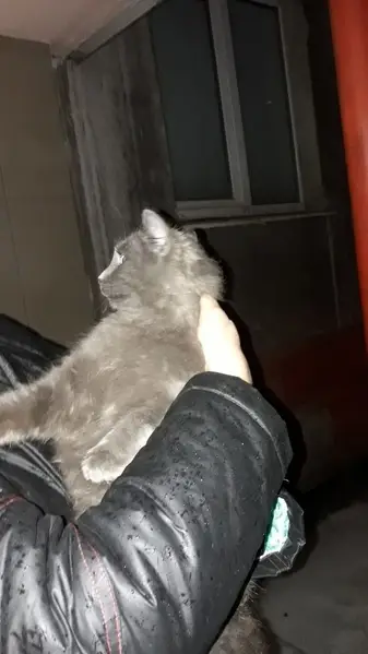 Нашла молодого кота около Варшавская (между детский сад 37 к.4, и милицией 37.к3) в руки не даётся, но очень голодный, кушает, видно, что породистый.