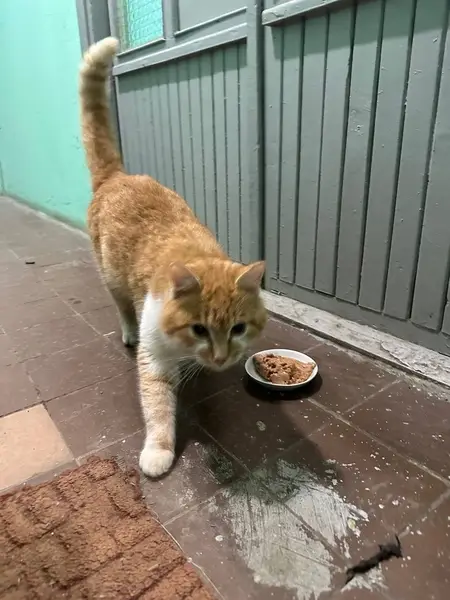 Санкт-Петербург, Невский район, ул Бабушкина. Кот появился в субботу (13.03.21), сидит в окошке подвала и кричит. Выходит общаться, очень голодный и худой, похоже потерялся не меньше недели назад. Точно был домашний, похоже стерилизован. К себе, даже для осмотра взять не можем, дома свой не очень здоровый кот(((. Кормим. Тел 89112532116