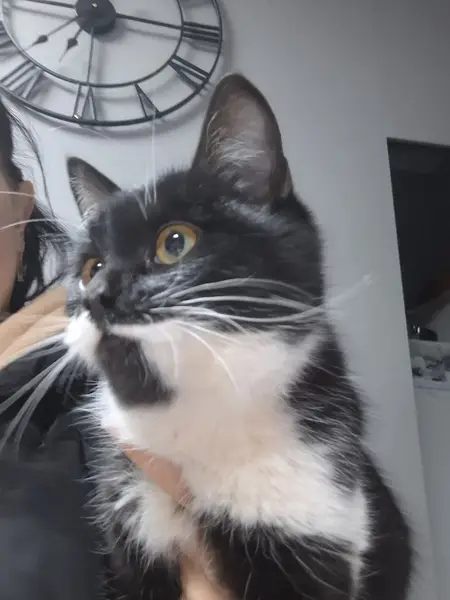 Вроде кошка, сидит в подъезде на Звёздной улице, голодная и худаю, к людям идёт, очень тихо мяукает (может от испуга).