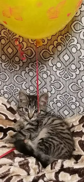 Найден котенок, девочка, полосатая, серенькая, у парадной дома. Хромает на лапку, около 3 мес. Ласковая. Отвезли в клинику, перелома нет.
