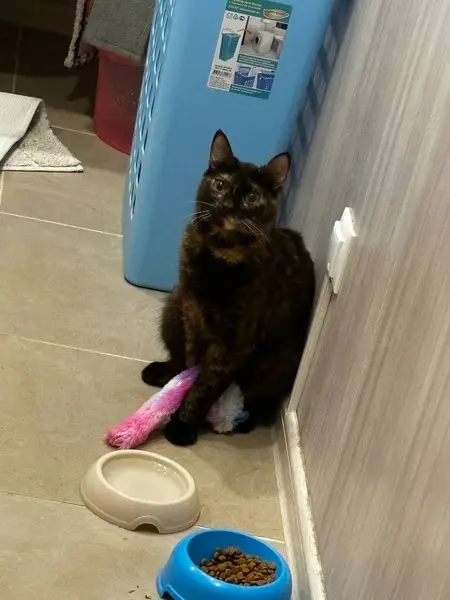 Кошечка очень ласковая, мурчащая,лоток знает.Стерелизована, обработана от паразитов, здорова. Кончик хвостика рыженький. Очень ориентирована на человека. В конце августа появилась во дворе и никуда больше не уходила, жила под деревом.