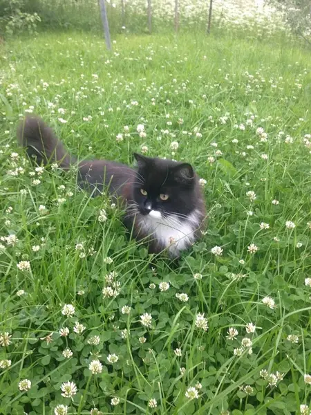 Нашелся около недели назад, предположительно кот, но могу ошибаться. Очень пушистый, живет в подъезде, его тут подкармливают, я в том числе. Видно, что был домашним ранее - относительно пугливый, но раз дал себя погладить. Не знаю, сколько он тут живет, возможно выкинули. Кажется, надкусано ушко, но это было давно. Не ранен, не хромает. Довольно увесист.