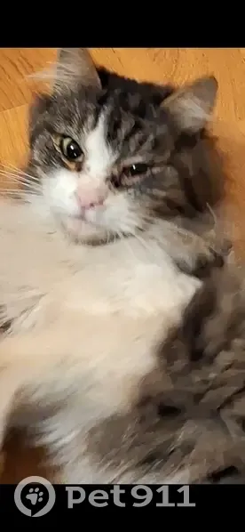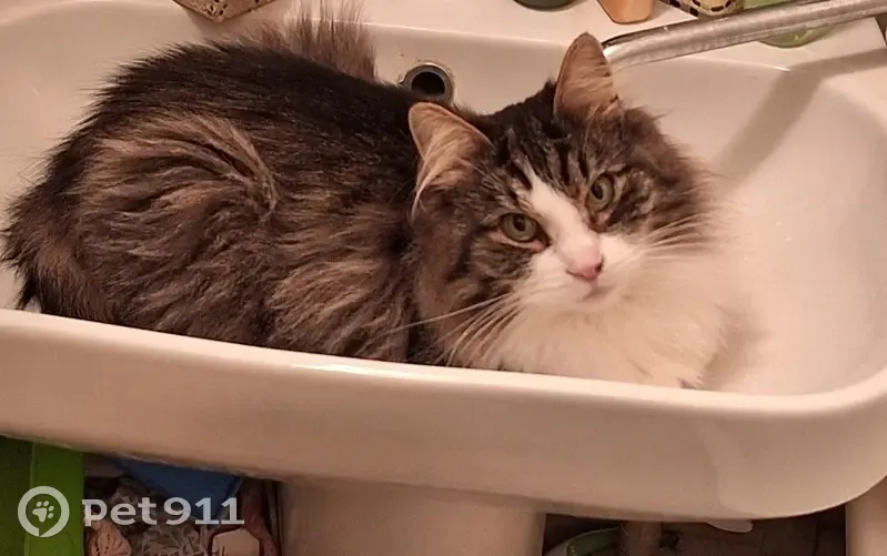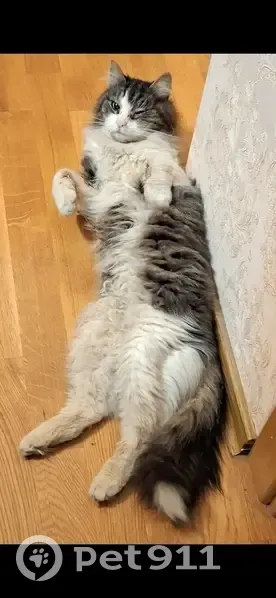 Найдена кошка пушистая, серая спинка с белым животиком. Ласковая .Была замечена 01.11.2024 в районе 9 часов утра у дома 40к.2 по ул. Есенина. Очень голодная.