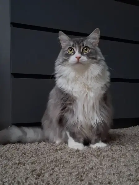 Найдена серая кошка около ЖКХ 2. Можно подозвать, но на руки не идёт. Видно, что домашняя, на вид не больше года. На улице как будто не больше недели (только лапы и хвост грязные)