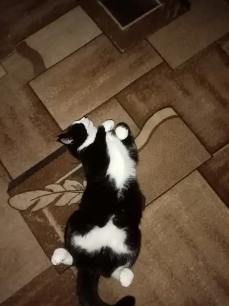 06.03.2025г. Вечером по адресу ул. Здоровцева 27, корп 2 зашёл в гости кот. Чёрно-белый, кастрирован, глаза янтарно-жëлтые, чистый упитанный, явно домашний, к лотку приучен, других котов не боится, игривый, наглый, похоже молодой, не агрессивный, идёт на руки.