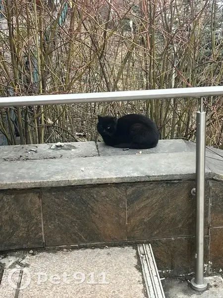 нашли кошку черную , шерсть очень чистая и гладкая, выглядит как домашняя, накормили паштетом, глаза светло-зеленые, пугливая, плохо видит левым глазом, не идет на контакт
