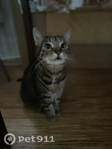 Кошка серого полосатого окраса, очень пухленькая, забежала в подъезд, мы ее покормили, а потом она забежала к нам в квартиру, при том что мы не загоняли ее (мы живем на первом этаже). Она очень ласковая постоянно мурчит и обтирается об ноги. Мы не можем оставить у себя, у нас съемная квартира и у меня есть кошка