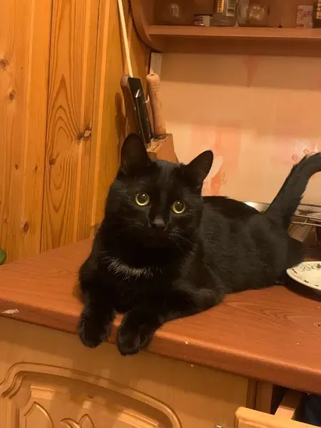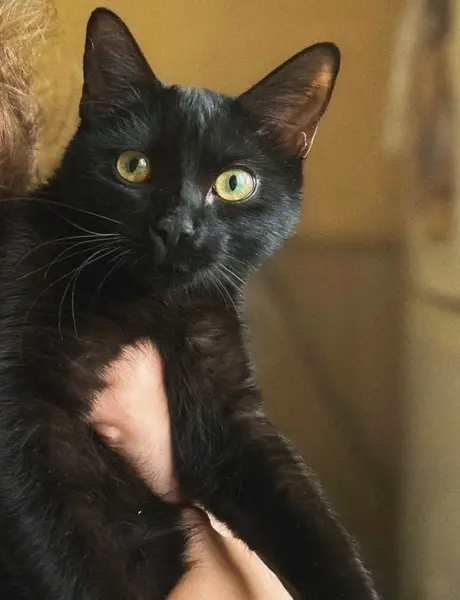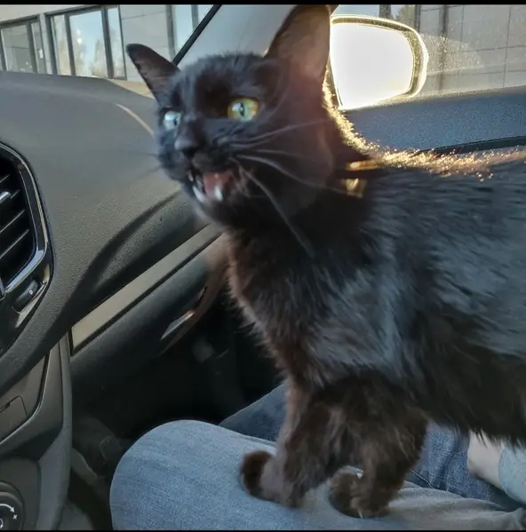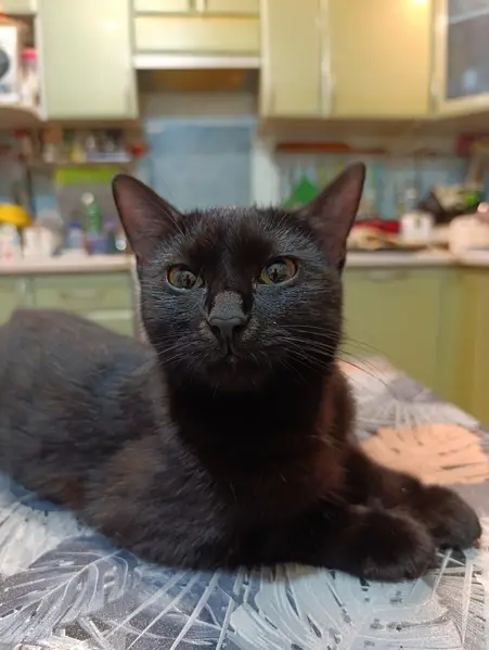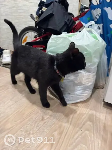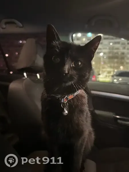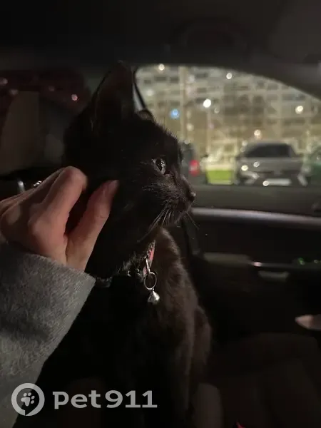 Найдена кошечка черного цвета, в ошейнике, очень контактная, игривая, возраст примерно 1 год, чип отсутствует. Прыгнула сама в машину на улице Кременчугской.