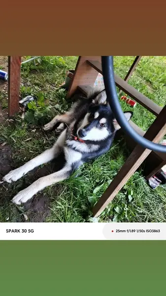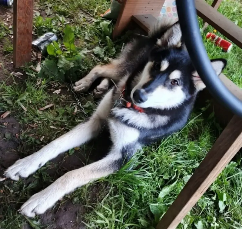 Глаза карие, похож на хаски, ошейника нет. Собака бегает по ул. Софьи Ковалевской. Замечена впервые на ул. Софьи Ковалевской д.12 возле магазина «Пятерочка». Точно домашняя, сидит ждет хозяев. Добрый, к людям привык, агрессию не проявляет, играет со всеми, кто подходит. Курсирует по улице