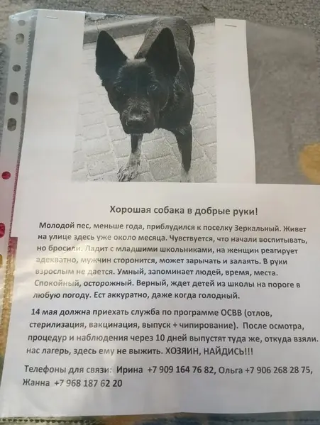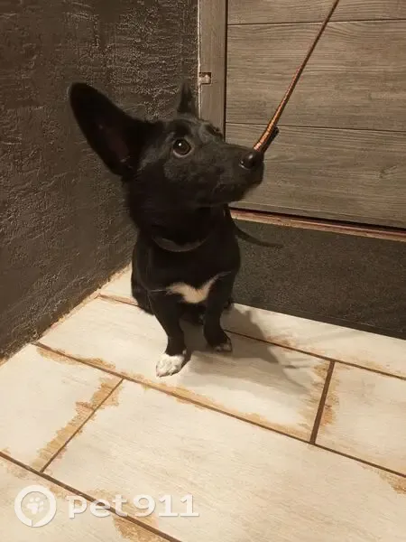 Кобель черного цвета, на груди белое пятно, на лапках белые носочки. Стоял у подъезда, в ошейнике и поводке. Испуганный, но в итоге подошёл. Найден в 7-30 29.07.2025.