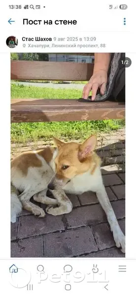 Окрас белая с рыжим, без ошейника и чипа, были в ветеринарной клинике на ул. Котика, д. 2, обработали от паразитов. Не голодная, но уставшая. Ласковая, контактная, с людьми и животными контакт без проблем.