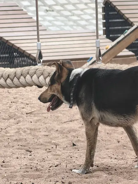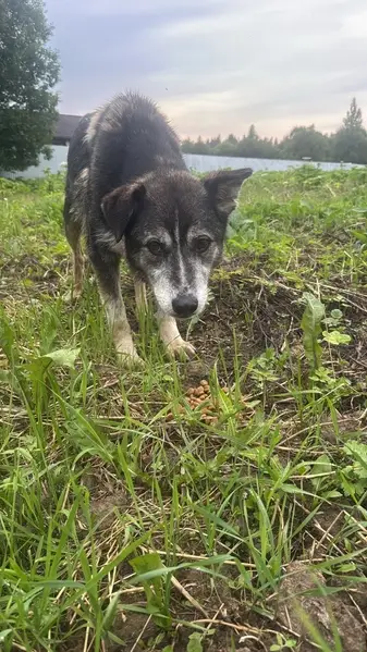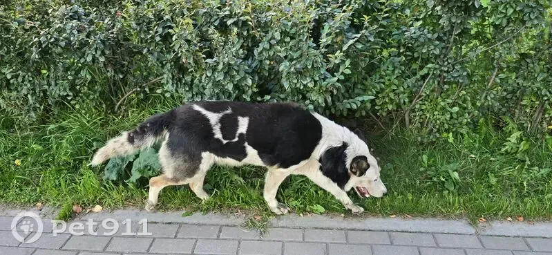 Пёс бегает в районе улицы Варшавская 3 - варшавская 9 (метро Электросила). Половина морды белая, половина черная. Пёс спокойный, не лает, на контакт не идёт, нюхает землю. Видела 8 и 9 сентября.
