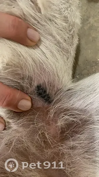 Собака черно-белая, небольшого размера, имеет клеймо на животе (предположительно асо3101), клеймо нечеткое. Собака очень воспитанная, понимает некоторые команды.