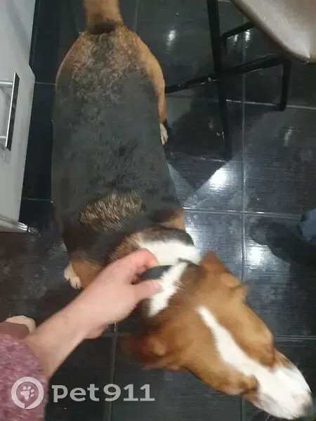 Бигль с ошейником взрослый. Приехала собака на 36 трамвае с красносельского района, вышла в автово Женщина вместе с ней ехала и сказала что зашла одна собака. Ищу хозяев или передержку