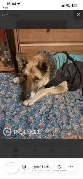 Добрый день. В ночь с 02.01 на 03.01.26 у дома 86 Октябрьской набережной найдена взрослая овчарка, девочка. Одета в зимний комбинезон. Сразу подошла к нам и прижалась к ногам. Отогрели в машине. Сейчас временно на передержке. Собака домашняя, очень добрая, не лает много лежит. В туалет просится (приучена). Просим хозяину откликнуться либо тем кто может взять себе.