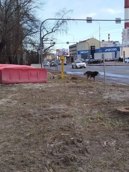 Неагрессивный, прибился к мальчишкам, забежал за ними следом в комплекс на Пражской.