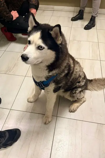 Найдена собака с ошейником на птичке!!! Порода Хаски!!! Хозяева отзовитесь!!!! Мальчик очень испуган и скучает!!! Звоните