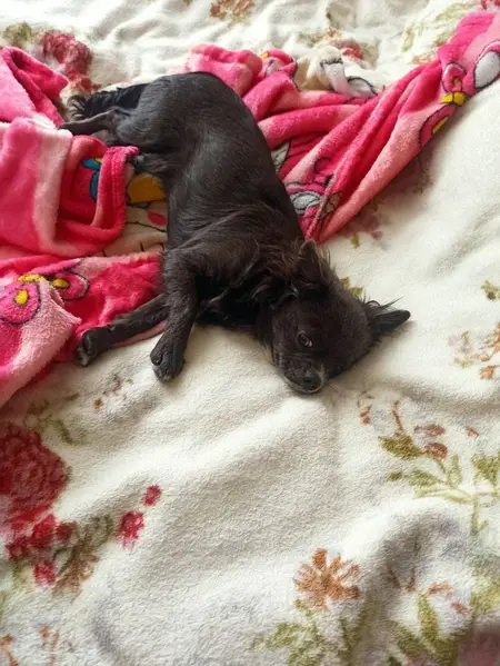 Собака черной окраски, девочка, с фиолетовым ошейником, на лапках и кончике хвоста белый окрас. Не боится людей, по повадкам похожа на домашнюю. Находилась утром у выхода из метро Черна речка. Сегодня была замечена первый раз.(прохожу там почти ежедневно.) Собака осталась у метро.