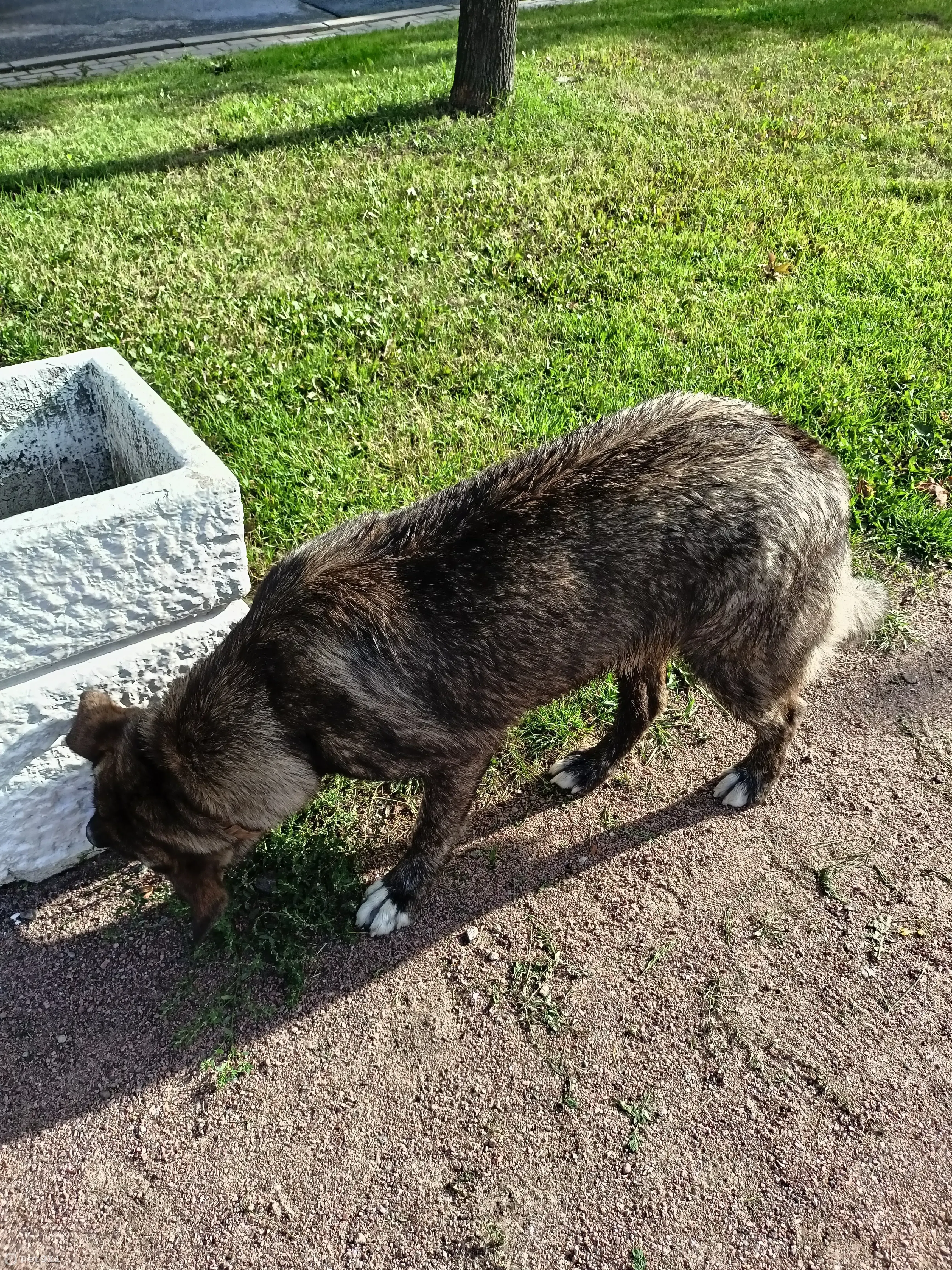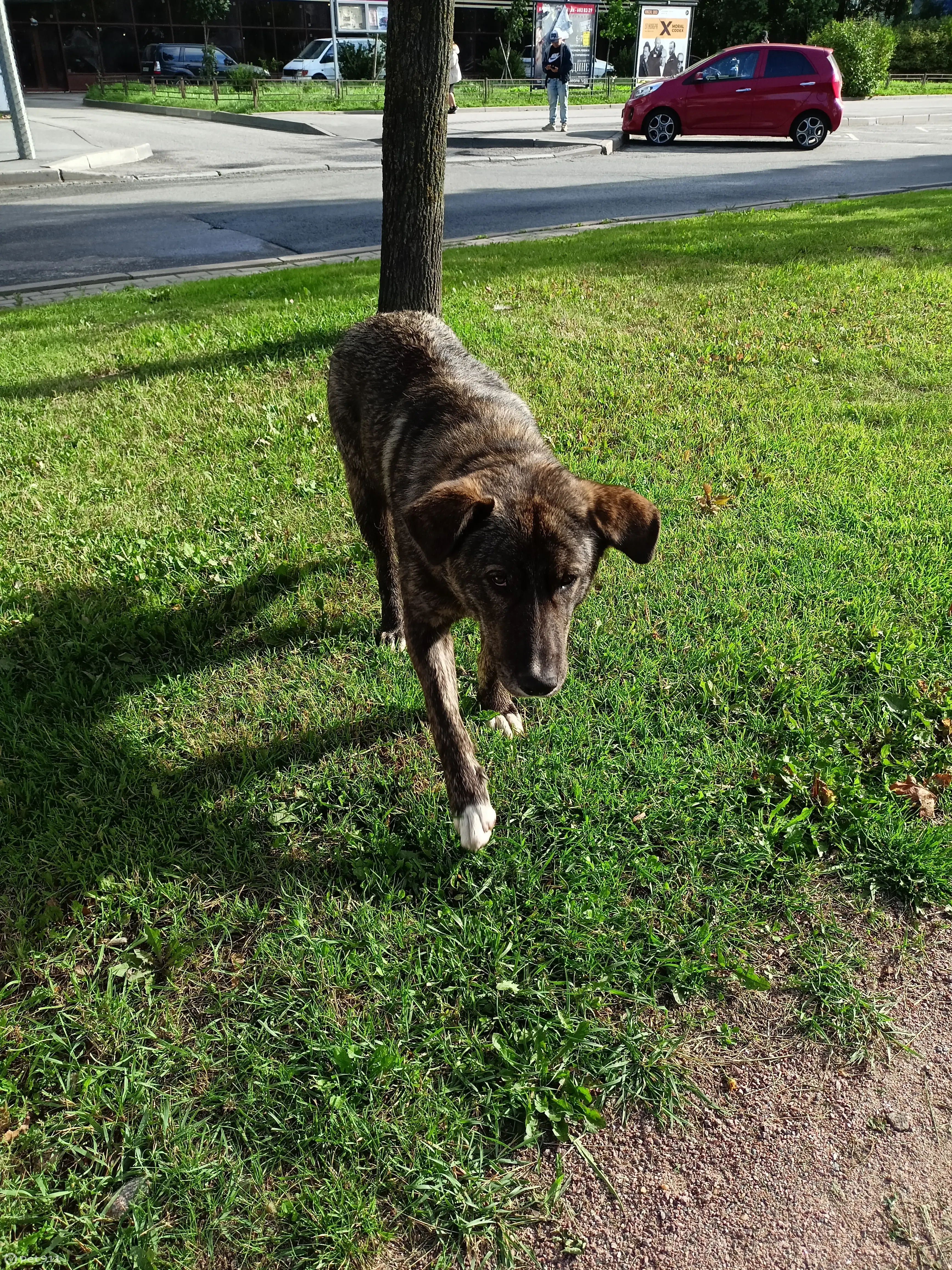 На Ленинском пр. между д. 124 и д.126 ходит взрослая собака, мальчик, в ошейнике. Большой (50-60 см в холке). Окрас коричневый. Спокойный, дружелюбный. Ищет хозяина.