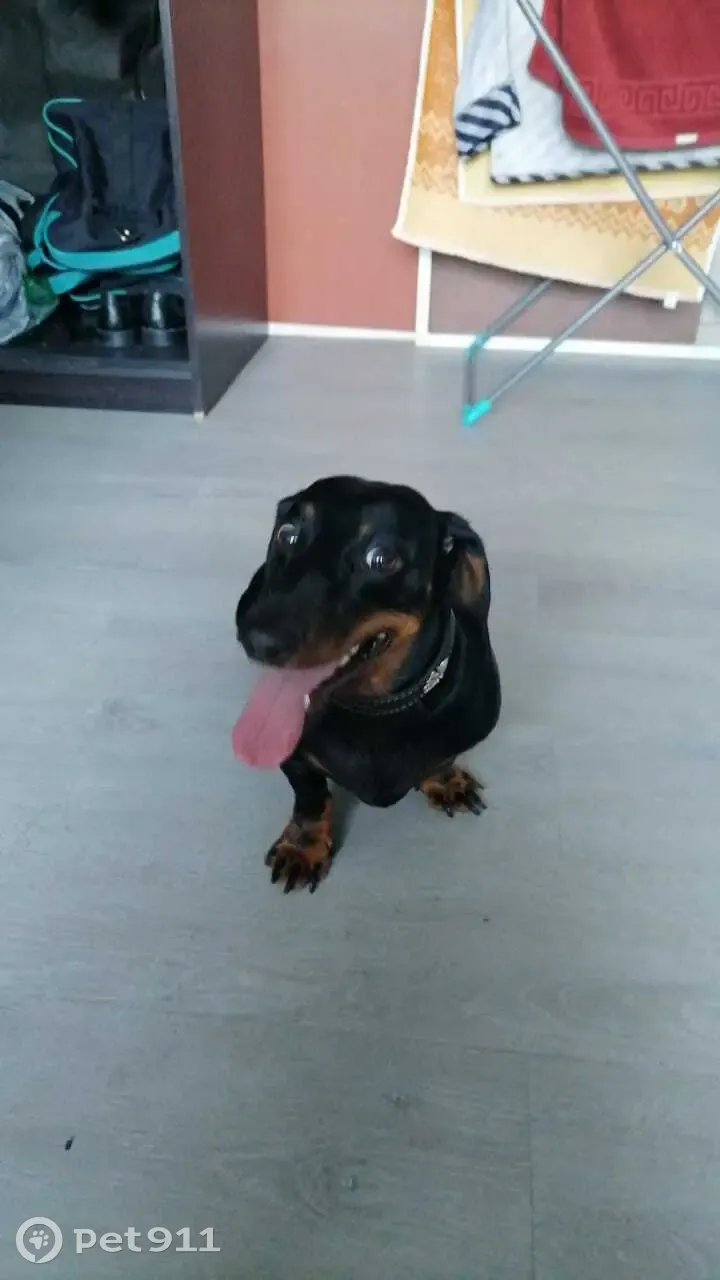 07.08.2023. Найден кобель таксы, черно-коричневый, с ошейником, проспект Славы, добрый и общительный парень. Видно решил погонять без хозяина, очень ждёт его. Звонить по телефону 8-962-710-55-95
