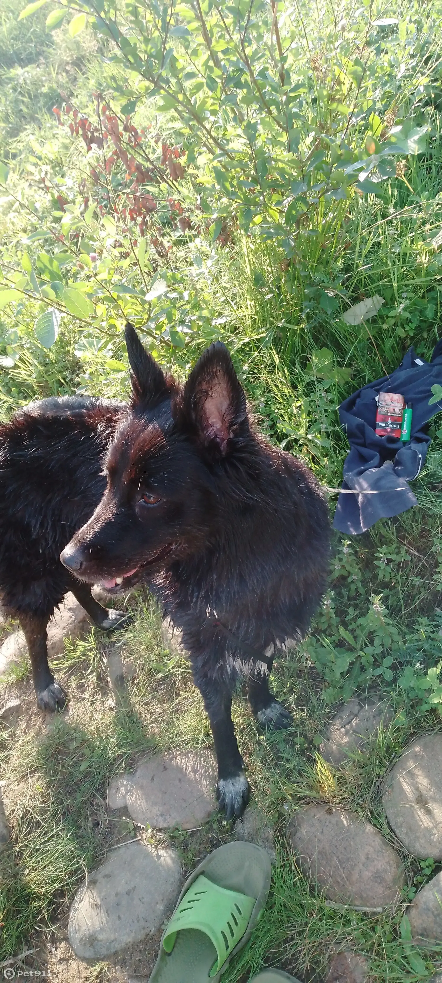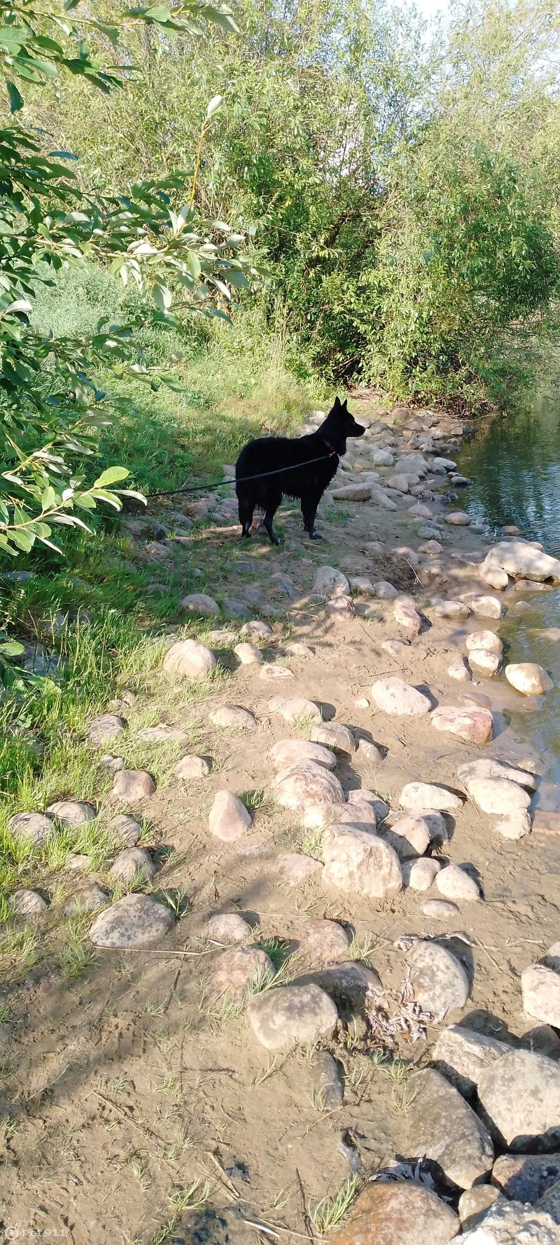 Боррдер колли, девочка, чёрный цвет , на лапках как будто белые тапочки в крапинку, на грудке белое и на конце хвоста. Собака бежала по главной Аллее порка сосновка, было в красном ошейнике. Очень адекватная собака.